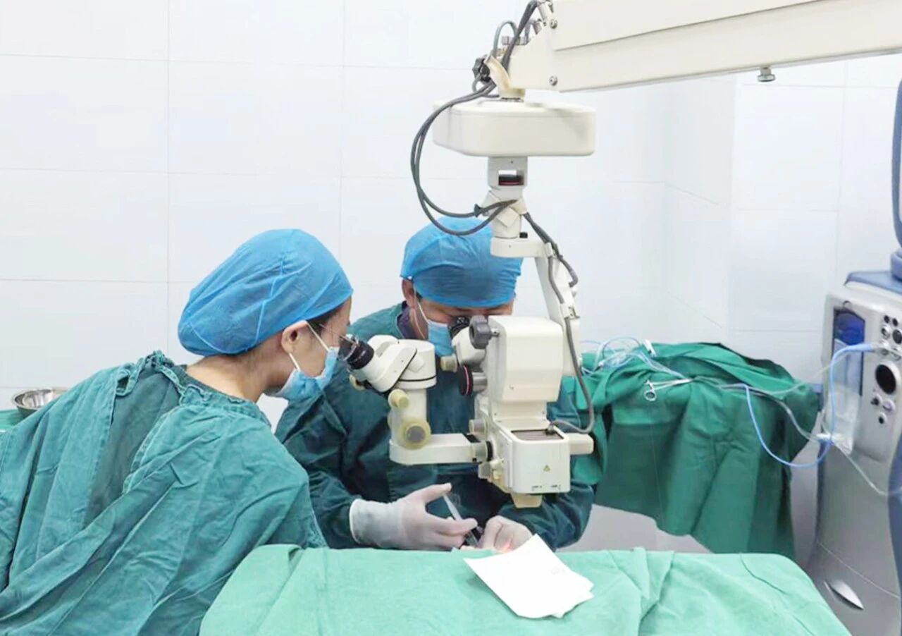 面对这一复杂病例,胡础图主任迅速组织眼科团队启动应急救治流程。基于诊断,胡础图主任与赵龙主治医生迅速为患者紧急施行了玻璃体腔注药术,将高浓度抗感染药物直接送达眼球内部的感染核心区域,为控制病情赢得了关键的第一时间。
