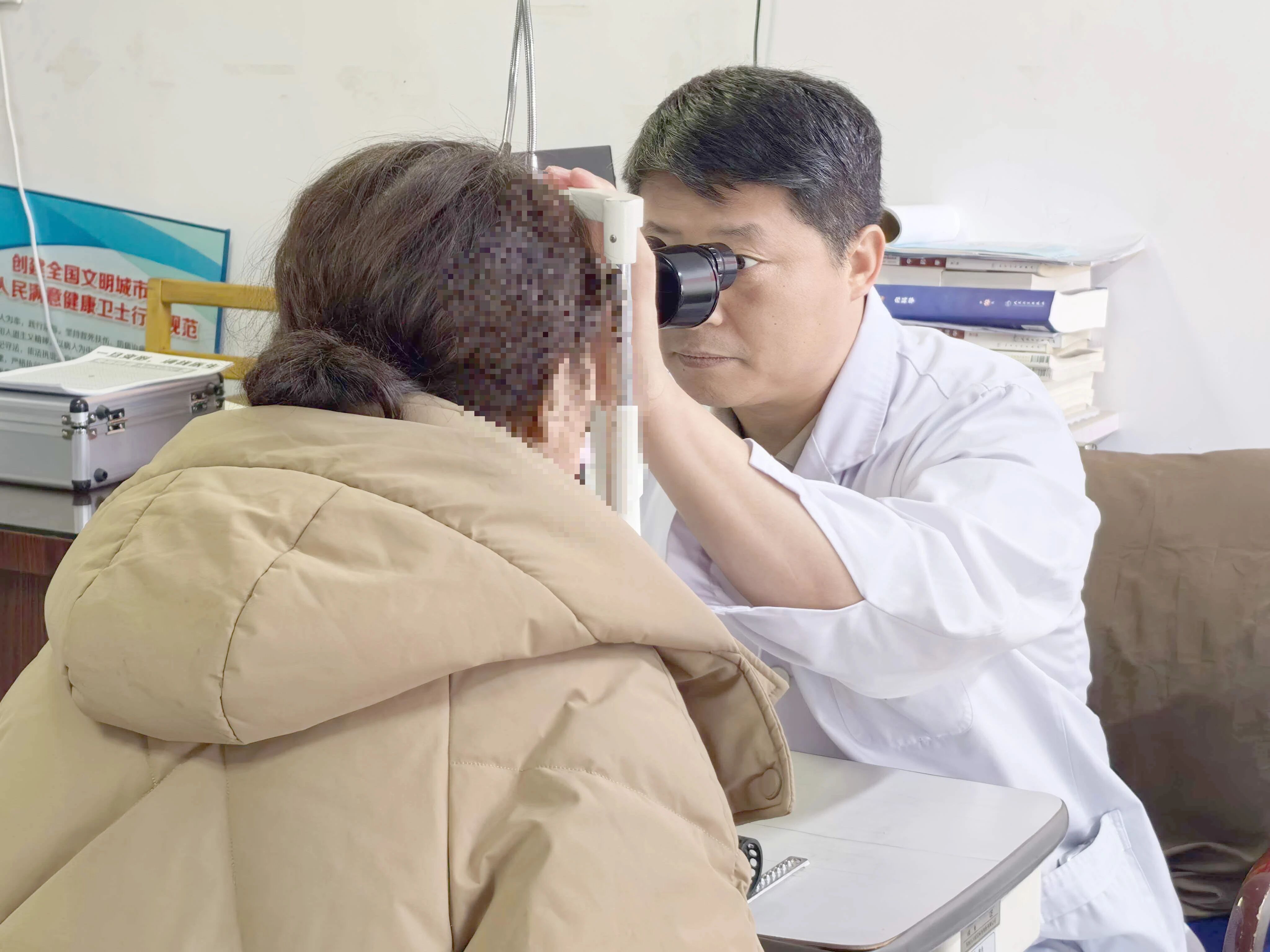 义诊当天清晨,胡础图主任带领支部党员医护团队赶往秀水社区服务站。胡础图主任亲自主持诊疗工作,凭借丰富的临床经验,通过裂隙灯细致观察居民眼睑、结膜、角膜、晶状体等眼部结构,筛查白内障、结膜炎等常见眼病;医护人员采用无创方式,为居民排查青光眼等眼压相关疾病风险;针对冬季高发的眼干、眼涩问题,泪液分泌实验为干眼症诊断提供科学依据;医学验光则通过电脑验光与插片矫正相结合,为屈光不正的居民提供精准数据;Amsler检查则重点协助筛查黄斑病变,助力老年黄斑疾病的早发现、早干预。同时现场解答居民关于用眼卫生、眼病治疗等方面的疑问,引导大家树立“早筛查、早诊断、早干预”的健康理念。