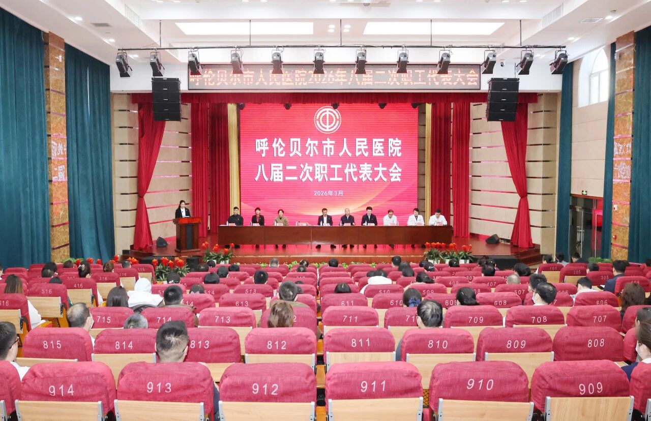 3月11日,呼伦贝尔市人民医院第八届二次职工代表大会在行政一楼多功能报告厅隆重召开。院领导、劳模代表及职工代表齐聚一堂,以习近平新时代中国特色社会主义思想为指引,深入贯彻党的二十大及二十届历次全会精神,全面落实健康中国建设及对内蒙古的重要指示要求,紧扣自治区党委“1571”工作部署,共商发展大计,擘画2026年高质量发展新蓝图。大会由陈桂玲副书记主持。