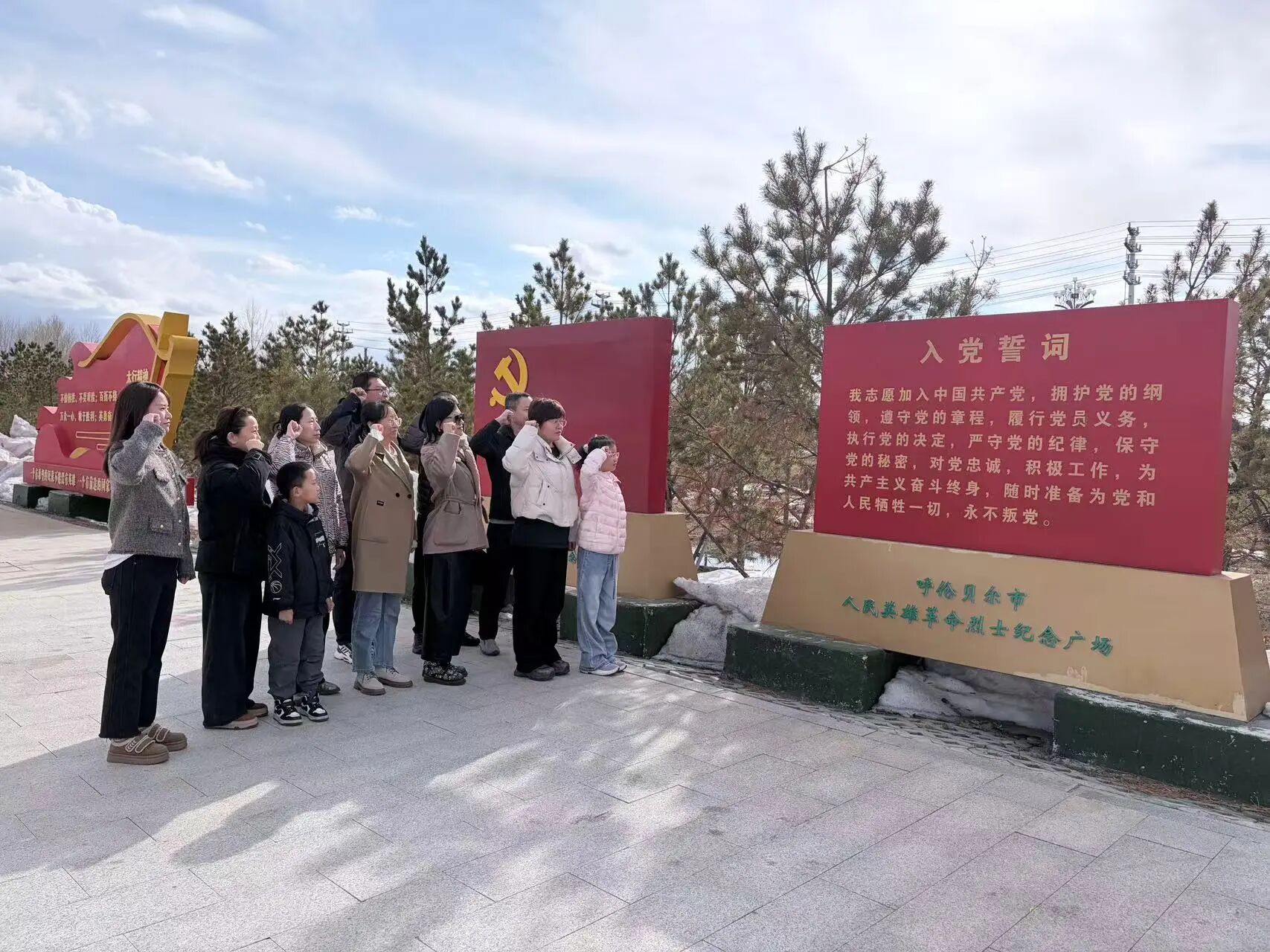 广场内庄严肃穆,烈士纪念碑巍然耸立。全体党员身着素装,在烈士纪念碑前整齐列队,神情庄重,全场肃立,全体党员垂首默哀三分钟,向为人民族解放为人民幸福英勇献身的革命先烈致以最崇高的敬意与最深切的哀思。默哀毕,党员们手捧精心准备的鲜花,缓步走向烈士纪念碑,郑重敬献,鞠躬致敬。 仪式结束后,党员们缓步绕行瞻仰烈士纪念碑,驻足凝视纪念碑上镌刻的烈士姓名与铭文,深刻感悟革命先辈们不畏艰险,无私奉献的崇高精神。大家通过这次扫墓活动,更加深刻认识到今日和平生活来之不易,党员们纷纷表示,在今后工作及生活中,要以更加饱满的热情、更加务实的作风,精进医术,优化服务,充分发挥党员先锋模范作用,立足岗位、守护呼伦贝尔百姓生命健康。
