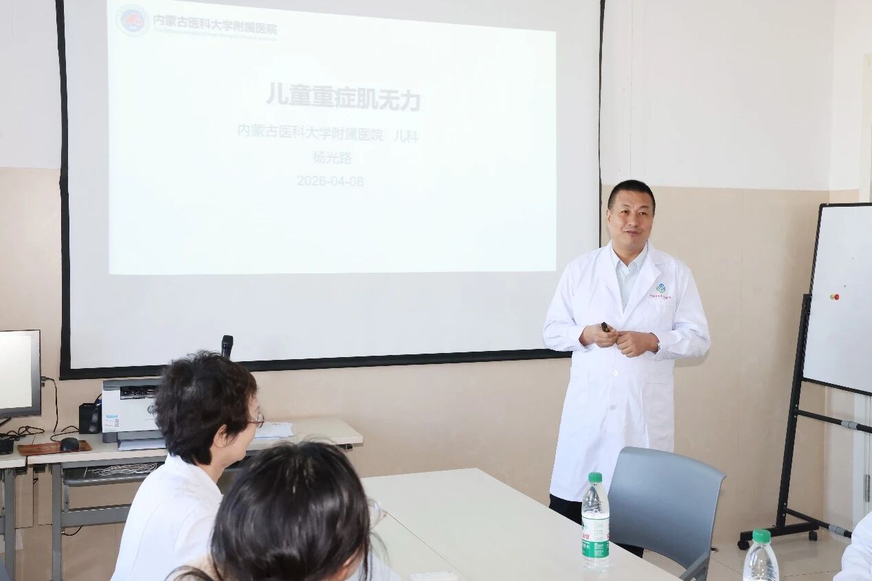 为深入学习贯彻习近平新时代中国特色社会主义思想,全面落实党的二十大精神,扎实推进《儿童青少年“五健”促进行动计划(2026-2030年)》,在院领导的大力支持下,我院儿科特邀内蒙古医科大学附属医院儿科主任、学科带头人、儿童神经知名专家杨光路主任来院,开展“呵护‘神’采,助力成长”儿童神经系统疾病专题讲座、教学查房与义诊活动,推动优质医疗资源下沉,切实守护呼伦贝尔地区儿童健康。