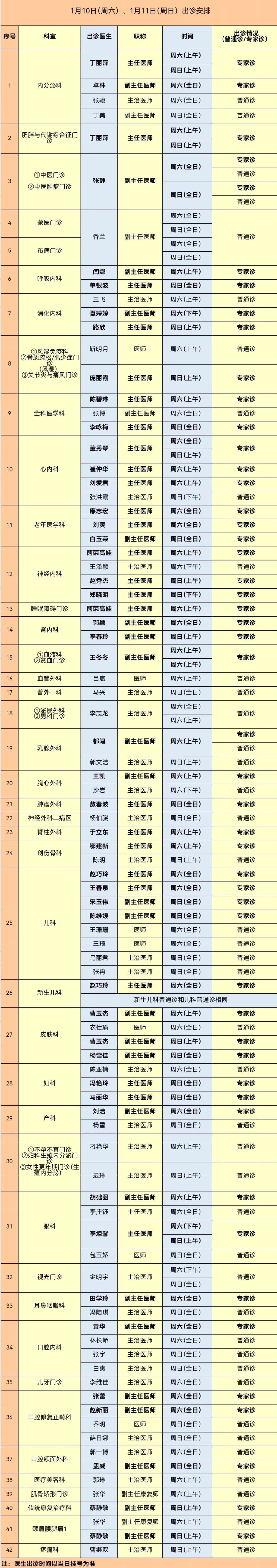 呼伦贝尔市人民医院1月10日(周六)、1月11日(周日)出诊安排