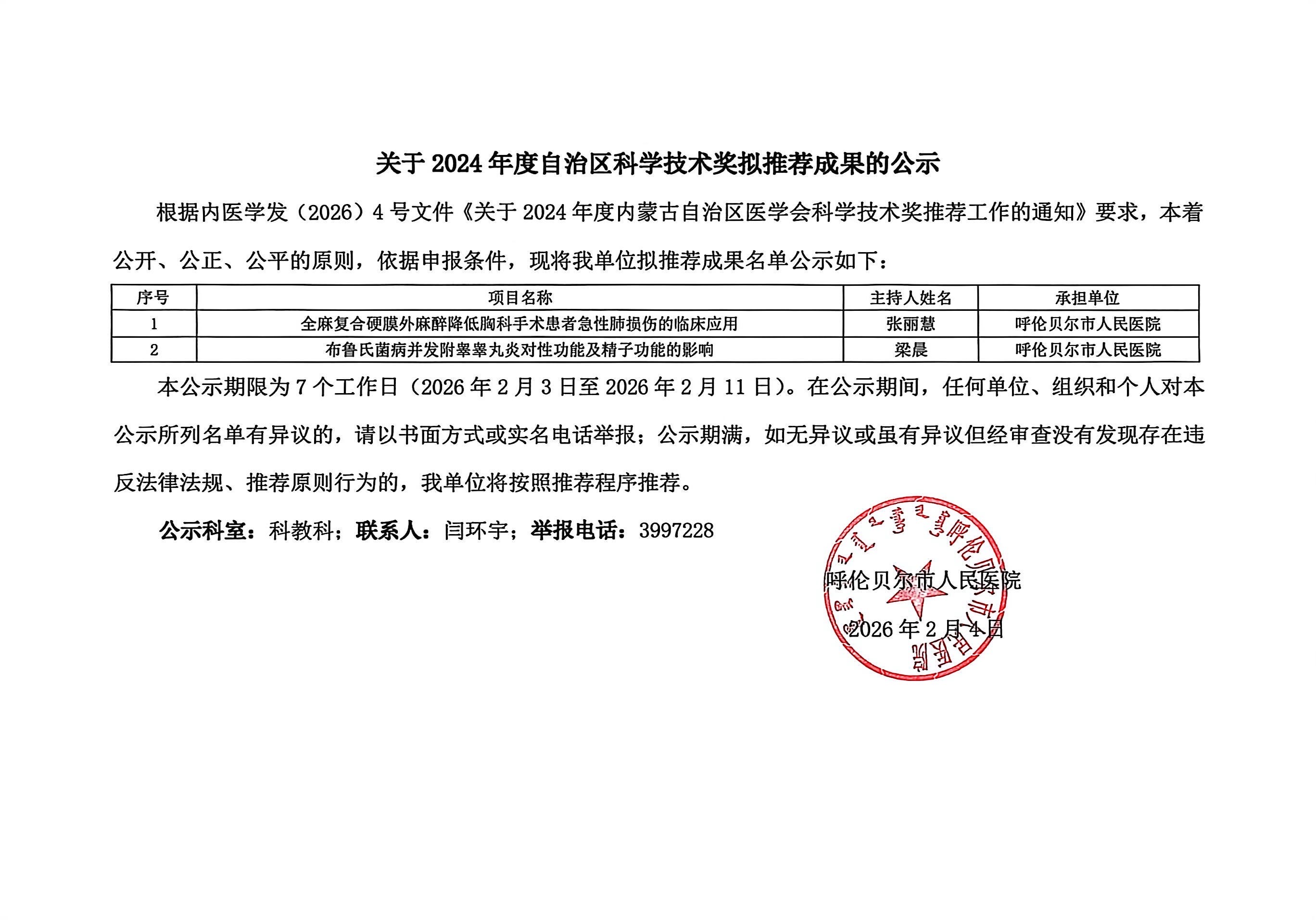 关于2024年度自治区科学技术奖拟推荐成果的公示