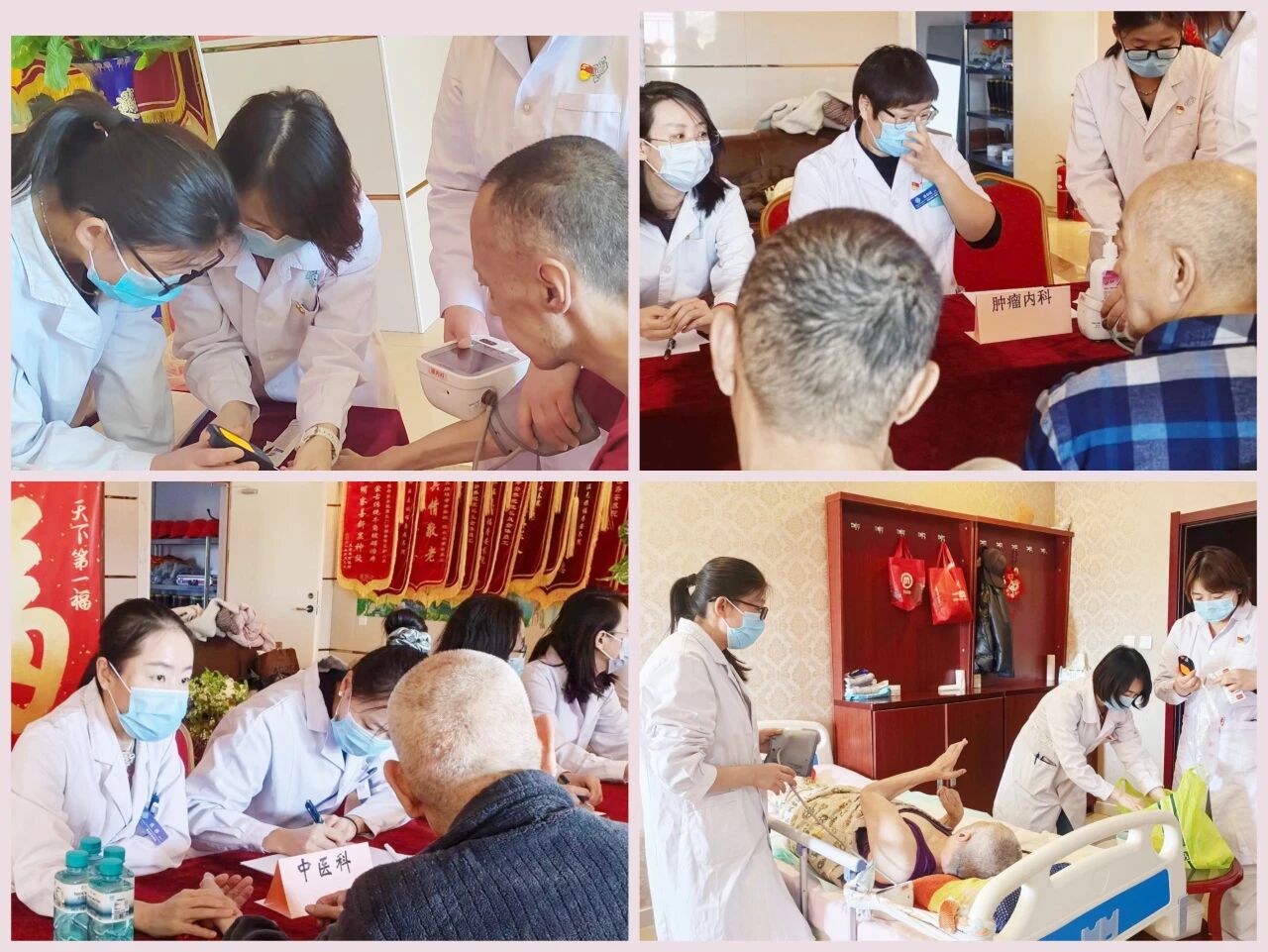 为切实提升义诊服务质量,精准满足安养院群众的健康需求,本次活动特别邀请中医科张静医生和肾脏内科萨如拉医生与四支部医护人员共同组建专业义诊团队。活动采用集中义诊+床边义诊相结合的形式,全方位、全覆盖为安养院民众提供贴心医疗服务。在集中义诊区域,医护团队有序为老人们开展血糖、血压监测,细致解答健康疑问,普及常见疾病预防、科学用药、日常养生等健康知识;针对行动不便、卧床不起的民众,义诊团队主动开展床边诊疗服务,提供卧床护理指导、一对一心理疏导、个性化疾病诊疗与康复建议,用专业医术和暖心服务,切实解决他们的实际健康问题,让他们足不出户就能享受到优质、便捷的医疗关怀。