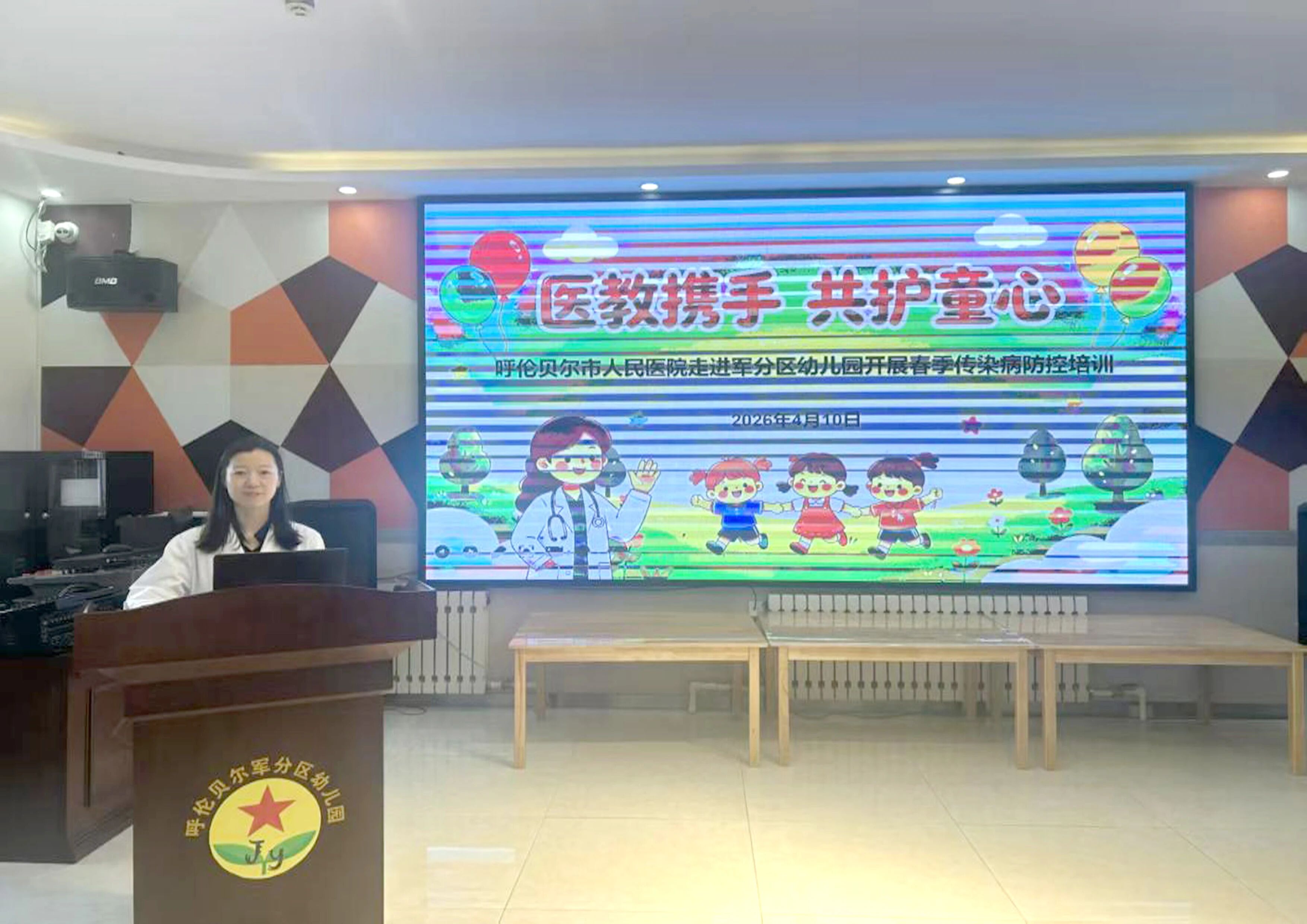 此次宣教面向幼儿园老师与家长,对团队专业能力和协作水平要求较高。筹备阶段,儿科联合感控科、团委群策群力,精心打磨宣教内容。儿科医生主导梳理框架,重点围绕诺如病毒、流感、手足口病等常见传染病,结合“五健”行动要求融入健康防护知识;感控科人员补充传染病防控细节,纠正误区;儿科护士细化居家护理实操技巧,确保内容通俗易懂。全体人员分工协作,全力保障活动顺利开展。 活动现场,儿科医生王珊珊以严谨热情的态度,向老师和家长详细讲解常见传染病的传播途径、症状及预防方法,结合“五健”要求普及儿童日常护理知识,逻辑清晰、重点突出。过程中与幼师积极互动,用通俗易懂的语言为老师们答疑解惑。 宣讲中,儿科护士胡丽与感染科高静医生默契配合、同向发力。胡丽护士补充幼儿防护实操细节,解答护理疑问;高静医生细化幼儿园防控流程和消毒规范,助力提升防控能力,与儿科医生形成互补,让宣教内容更全面专业。 为帮助各位教师全面掌握学龄前儿童生长发育核心知识,及时发现幼儿生长发育异常信号,做好家园健康协同照护,儿科医务人员特编制手册,聚焦幼儿在园常见生长发育问题、观察要点与照护技巧分发给幼儿园教师,为幼儿健康成长保驾护航。 今后,呼伦贝尔市人民医院儿科团队将继续深入践行“五健”促进行动要求,持续开展形式多样、内容丰富的健康宣教活动,选派骨干力量走进更多幼儿园,把专业的健康服务送到老师和家长身边,以团队的力量守护每一位儿童健康快乐成长,全体儿科医护人员同心同德、并肩前行,以实际行动诠释“一切为了孩子,为了孩子一切,为了一切孩子”的医者初心与使命。