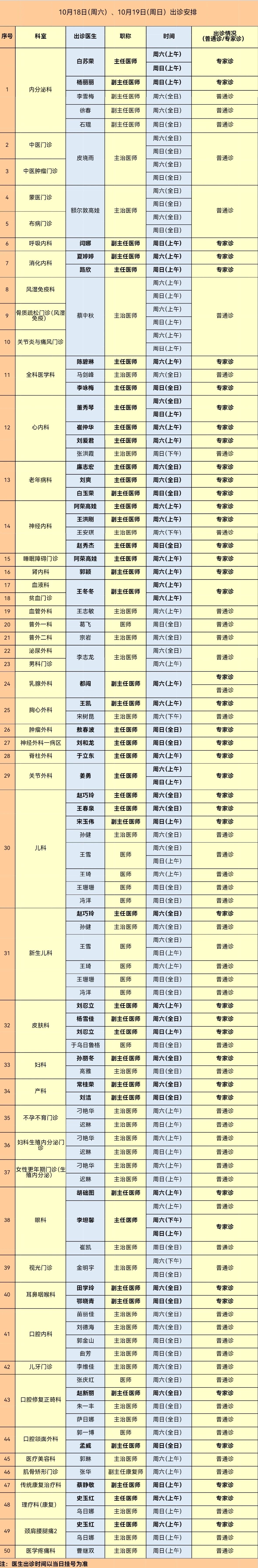 呼伦贝尔市人民医院10月18日(周六)、10月19日(周日)出诊安排