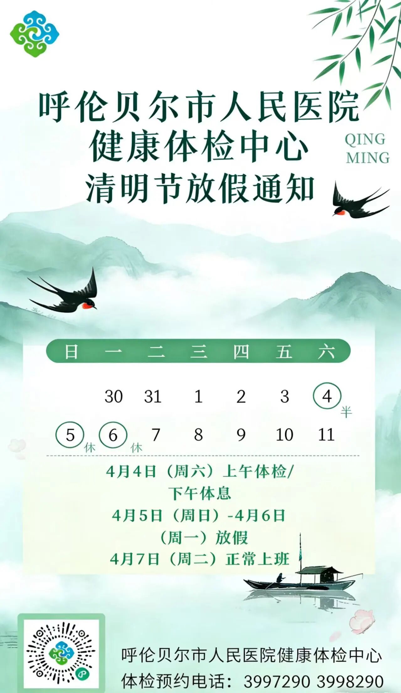 呼伦贝尔市人民医院健康体检中心清明节放假通知